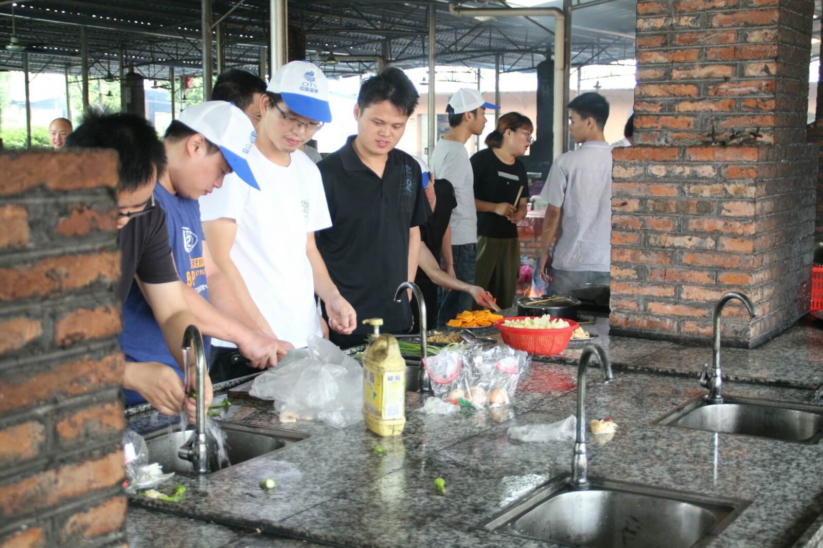 第三天,我們跟隨生物鐘醒來,相比前兩天,今天的活動時間相對寬裕,早上九點多起來吃過酒店特意留的早餐我們啟程去往郊區野炊,野炊自給自足,一切吃的都要自己動手在公司我們是職員現在我們是廚師大家都磨拳擦掌的行動起來,洗菜的、掌勺的、打下手的、添柴火的,不一會兒一盤色香味俱全的菜擺在桌上沒多久桌上已經是好幾道菜了有炒蛋、冬瓜湯、爆炒雞塊、南瓜片、炒青菜....,每道菜都富有不同的特色我拿起了手中的相機,將這一刻留在了鏡頭之中,大家相互顯無比親近,雖然只有這短短的三天。