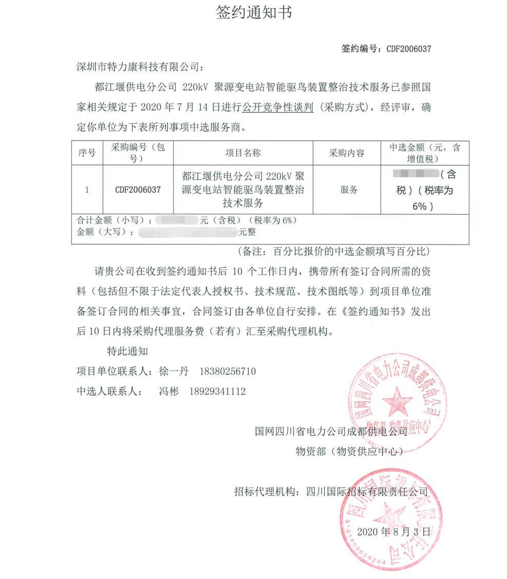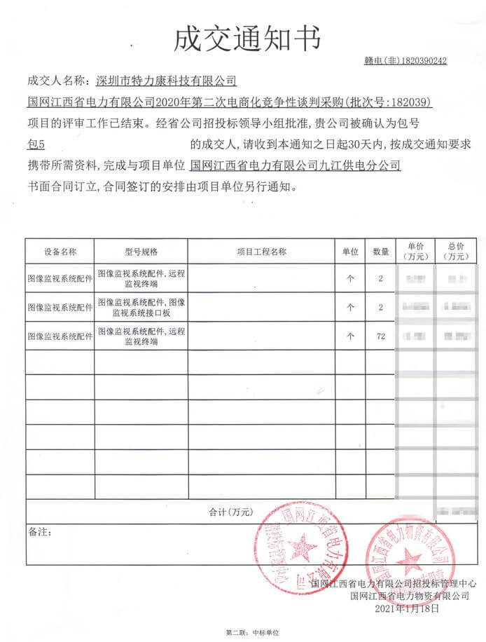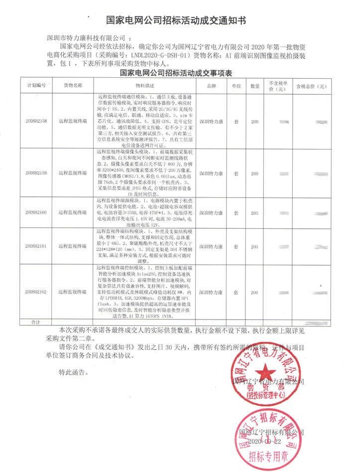 特力康中標國網(wǎng)黑龍江送變電工程公司的2024年度第18次物資類競爭性談判采購項目——慶陽驅鳥器物資框 特力康中標國網(wǎng)甘肅省電力公司省管產業(yè)單位2024年第五次物資競爭性談判授權采購項目 中標喜訊:深圳市特力康科技有限公司成功入圍許繼集團綜合能源公司輸電線路視頻在線監(jiān)測裝置模塊集采項目 中標喜訊:特力康成功中標國網(wǎng)重慶市電力公司渝中一片區(qū)項目 特力康成功中標國網(wǎng)天津市電力公司2024年第二次?物?資招標項目 特力康中標國網(wǎng)安徽省電力有限公司蕪湖供電公司2024年3月非物質采購項目 四川電力用特力康架空輸電線路山火監(jiān)測裝置,筑牢林區(qū)輸電 “防火墻”? 遼寧電力啟用特力康多視角監(jiān)拍裝置,全維度守護輸電安全? 破解黃土高原沉降難題:山西電力用特力康北斗裝置守桿塔安全? 山東電力啟用特力康動態(tài)版智能激光驅鳥器,動態(tài)防控守護變電站安全? 湖南超高壓電力啟用特力康球機 AI 監(jiān)測裝置,智能守護輸電通道安全? 廣西電力啟用特力康高壓電纜護層環(huán)流監(jiān)控設備,筑牢電纜安全防線? 山東電力用上特力康綜合驅鳥器,多手段守護變電站安全? 陜西電力啟用特力康智能預警系統(tǒng),多維監(jiān)測守護輸電安全? 寧夏配電線路安裝了我司防外破電子化智能警示牌