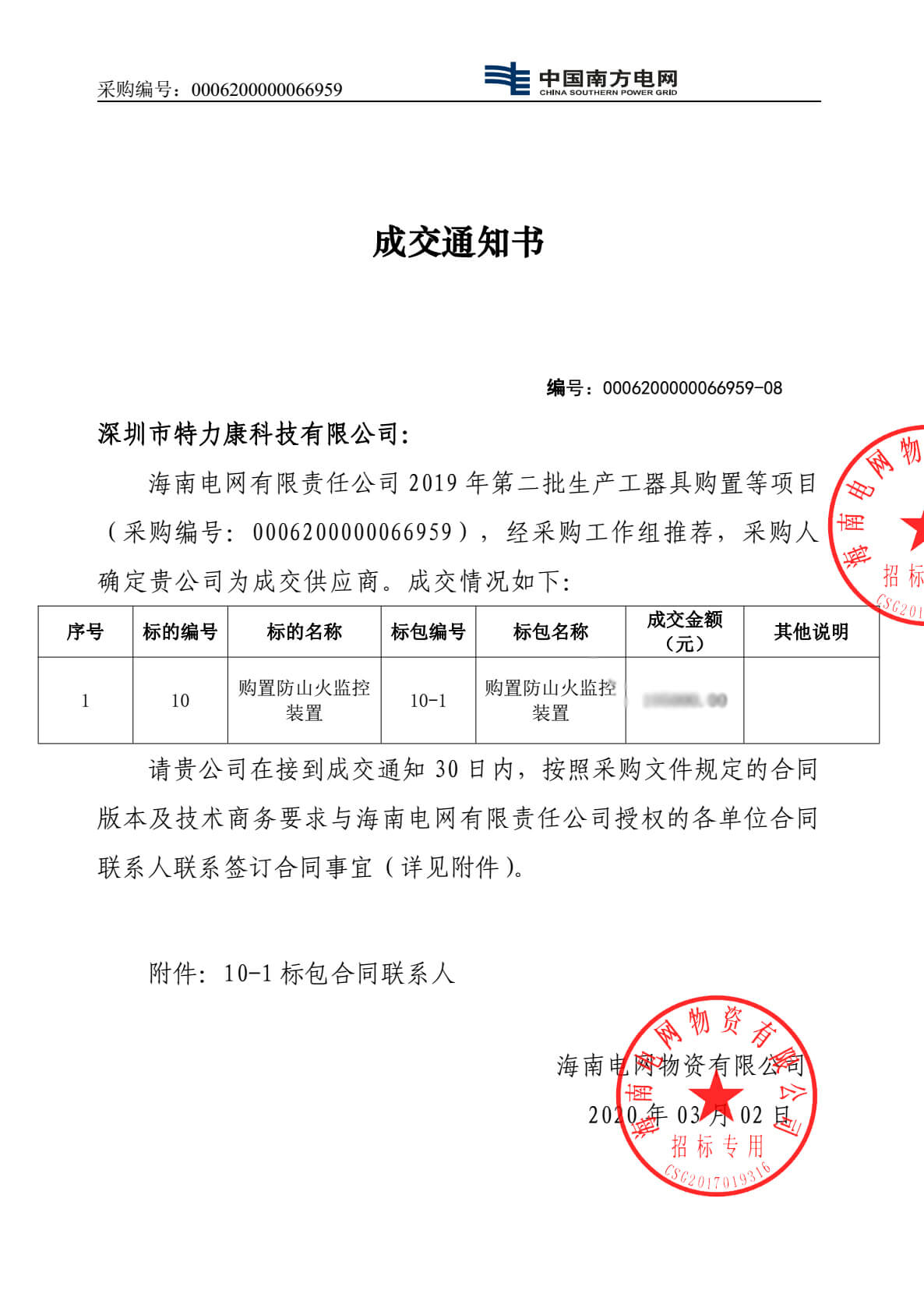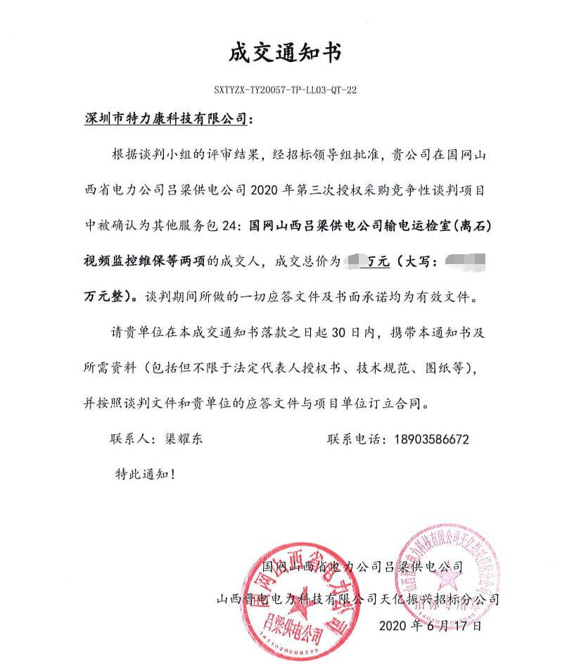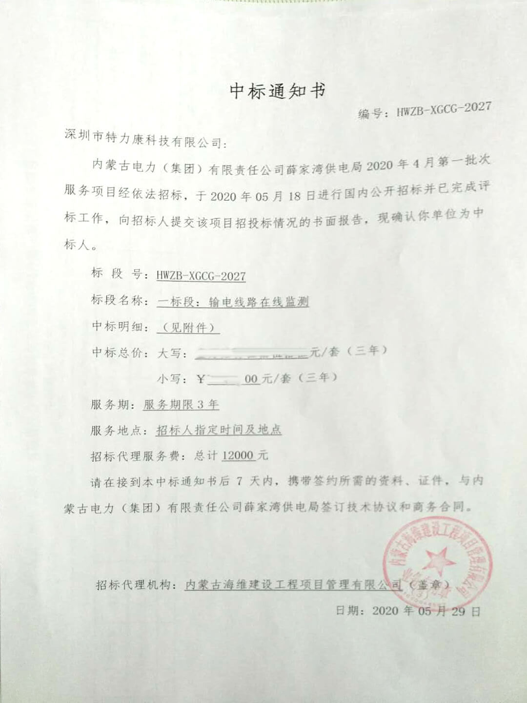 特力康中標國網黑龍江送變電工程公司的2024年度第18次物資類競爭性談判采購項目——慶陽驅鳥器物資框 特力康中標國網甘肅省電力公司省管產業單位2024年第五次物資競爭性談判授權采購項目 中標喜訊:深圳市特力康科技有限公司成功入圍許繼集團綜合能源公司輸電線路視頻在線監測裝置模塊集采項目 中標喜訊:特力康成功中標國網重慶市電力公司渝中一片區項目 特力康成功中標國網天津市電力公司2024年第二次?物?資招標項目 特力康中標國網安徽省電力有限公司蕪湖供電公司2024年3月非物質采購項目 四川電力用特力康架空輸電線路山火監測裝置,筑牢林區輸電 “防火墻”? 遼寧電力啟用特力康多視角監拍裝置,全維度守護輸電安全? 破解黃土高原沉降難題:山西電力用特力康北斗裝置守桿塔安全? 山東電力啟用特力康動態版智能激光驅鳥器,動態防控守護變電站安全? 湖南超高壓電力啟用特力康球機 AI 監測裝置,智能守護輸電通道安全? 廣西電力啟用特力康高壓電纜護層環流監控設備,筑牢電纜安全防線? 山東電力用上特力康綜合驅鳥器,多手段守護變電站安全? 陜西電力啟用特力康智能預警系統,多維監測守護輸電安全? 寧夏配電線路安裝了我司防外破電子化智能警示牌