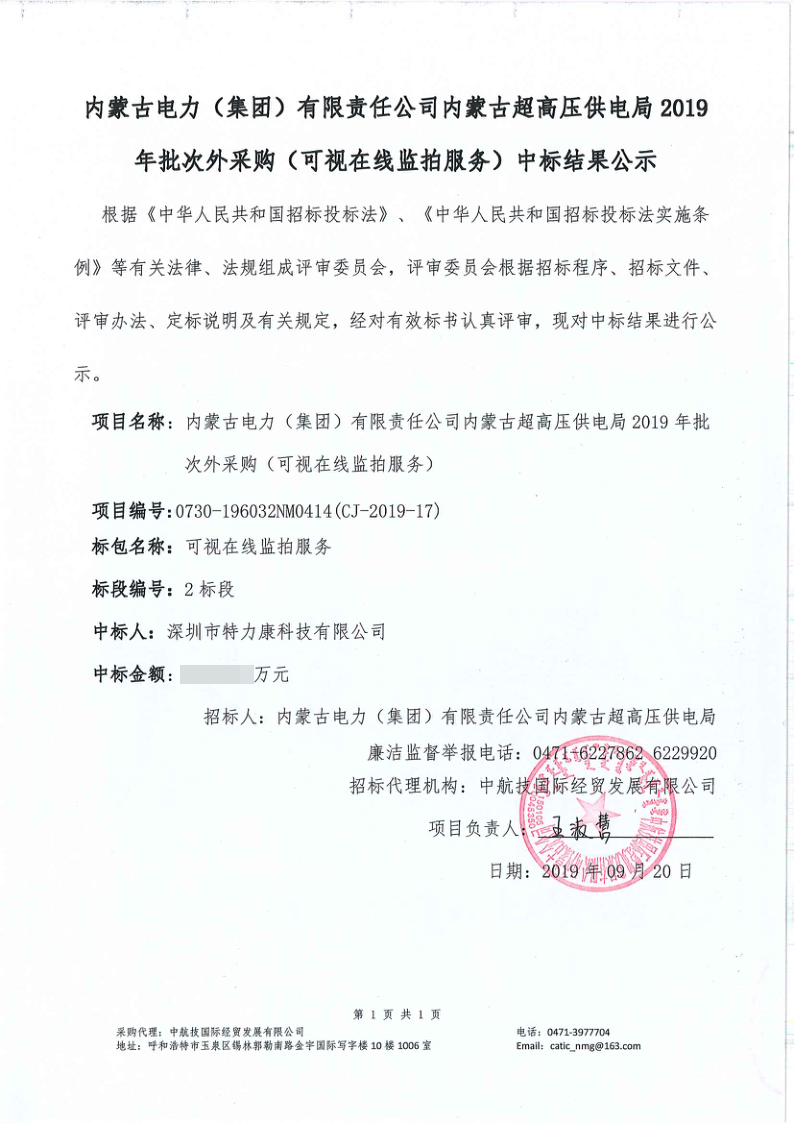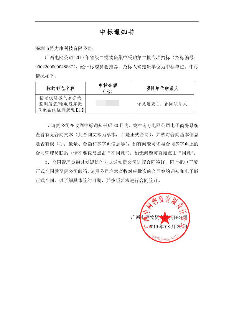 特力康中標國網黑龍江送變電工程公司的2024年度第18次物資類競爭性談判采購項目——慶陽驅鳥器物資框 特力康中標國網甘肅省電力公司省管產業單位2024年第五次物資競爭性談判授權采購項目 中標喜訊:深圳市特力康科技有限公司成功入圍許繼集團綜合能源公司輸電線路視頻在線監測裝置模塊集采項目 中標喜訊:特力康成功中標國網重慶市電力公司渝中一片區項目 特力康成功中標國網天津市電力公司2024年第二次?物?資招標項目 特力康中標國網安徽省電力有限公司蕪湖供電公司2024年3月非物質采購項目 四川電力用特力康架空輸電線路山火監測裝置,筑牢林區輸電 “防火墻”? 遼寧電力啟用特力康多視角監拍裝置,全維度守護輸電安全? 破解黃土高原沉降難題:山西電力用特力康北斗裝置守桿塔安全? 山東電力啟用特力康動態版智能激光驅鳥器,動態防控守護變電站安全? 湖南超高壓電力啟用特力康球機 AI 監測裝置,智能守護輸電通道安全? 廣西電力啟用特力康高壓電纜護層環流監控設備,筑牢電纜安全防線? 山東電力用上特力康綜合驅鳥器,多手段守護變電站安全? 陜西電力啟用特力康智能預警系統,多維監測守護輸電安全? 寧夏配電線路安裝了我司防外破電子化智能警示牌