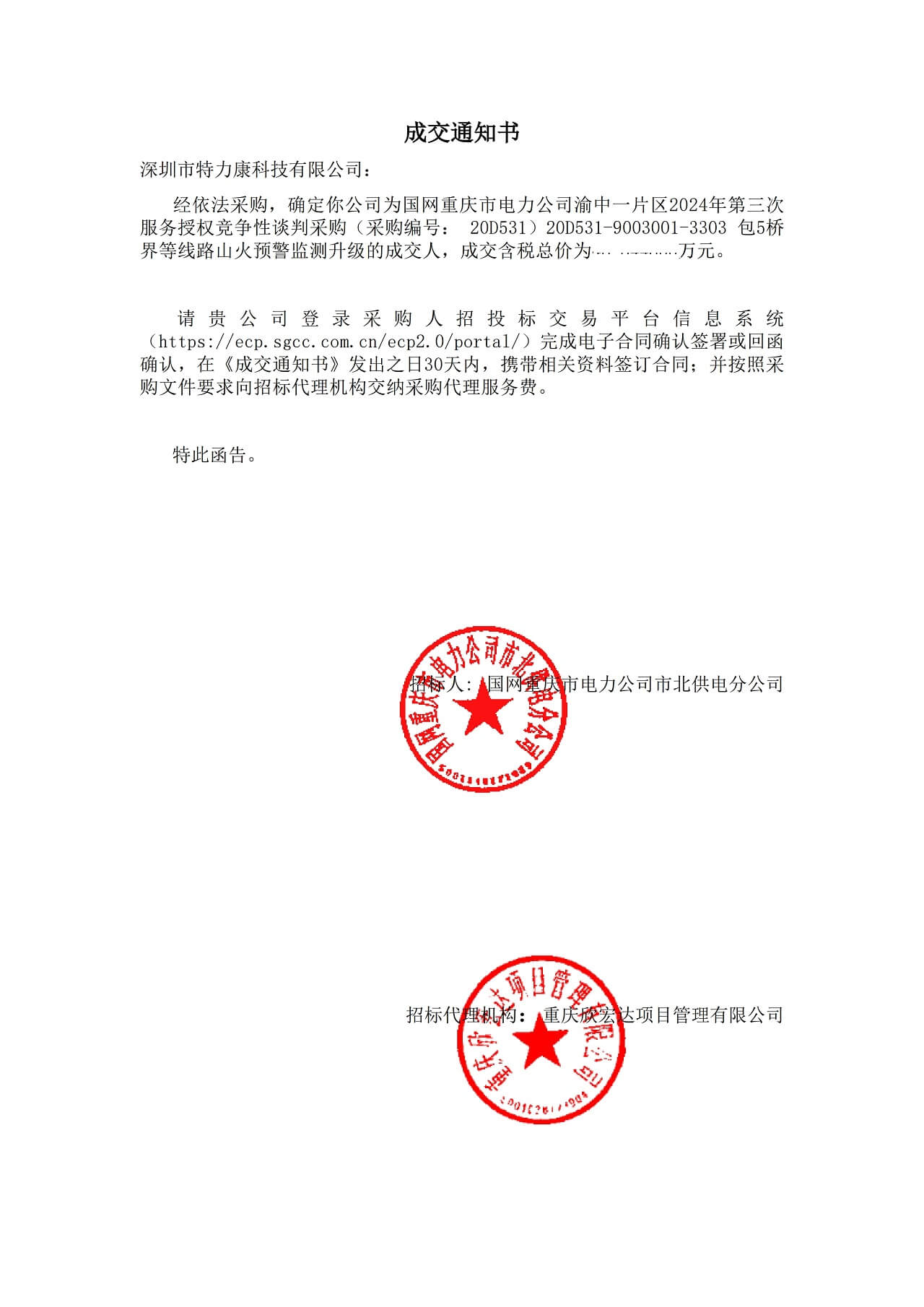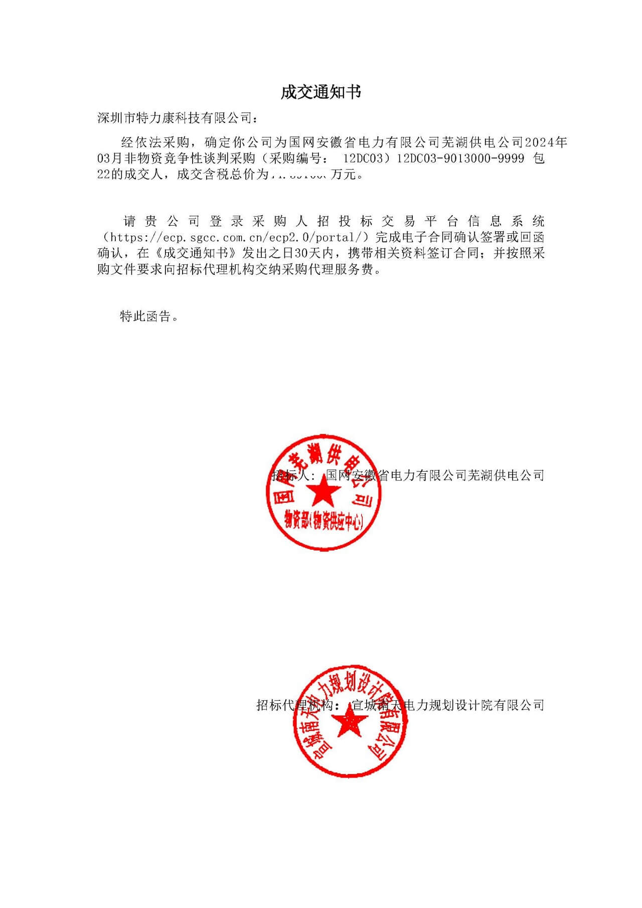 特力康中標國網黑龍江送變電工程公司的2024年度第18次物資類競爭性談判采購項目——慶陽驅鳥器物資框 特力康中標國網甘肅省電力公司省管產業單位2024年第五次物資競爭性談判授權采購項目 中標喜訊:深圳市特力康科技有限公司成功入圍許繼集團綜合能源公司輸電線路視頻在線監測裝置模塊集采項目 中標喜訊:特力康成功中標國網重慶市電力公司渝中一片區項目 特力康成功中標國網天津市電力公司2024年第二次?物?資招標項目 特力康中標國網安徽省電力有限公司蕪湖供電公司2024年3月非物質采購項目 破解黃土高原沉降難題:山西電力用特力康北斗裝置守桿塔安全? 山東電力啟用特力康動態版智能激光驅鳥器,動態防控守護變電站安全? 湖南超高壓電力啟用特力康球機 AI 監測裝置,智能守護輸電通道安全? 廣西電力啟用特力康高壓電纜護層環流監控設備,筑牢電纜安全防線? 山東電力用上特力康綜合驅鳥器,多手段守護變電站安全? 陜西電力啟用特力康智能預警系統,多維監測守護輸電安全? 五目監測筑牢安全網?,河南電力部門啟用我司特力康高壓輸電線路在線遠程圖像系統 寧夏配電線路安裝了我司防外破電子化智能警示牌