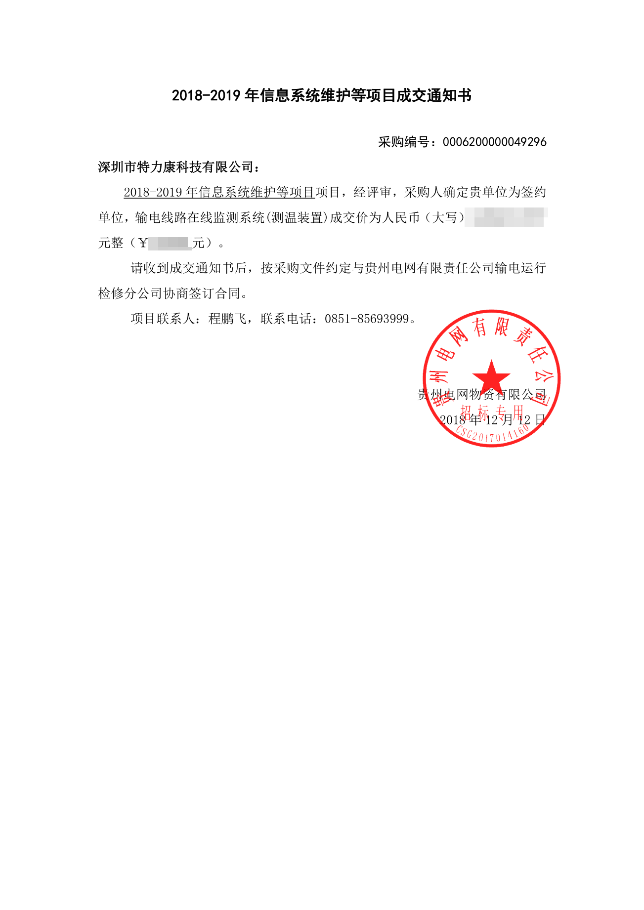 我司中標(biāo)貴州省電力公司2018-2019信息系統(tǒng)維護(hù)項目