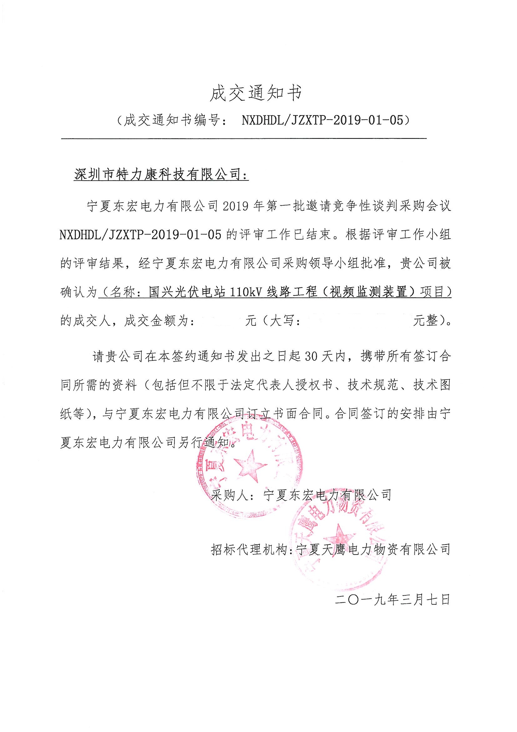 我司中標寧夏2019年第一批邀請競爭性110kv(視頻監控裝置)項目